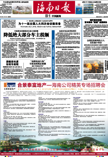 海南日报报业集团旗下媒体: 海南日报 | 南国都市报 | 南海网 | 南岛晚报 | 证券导报 加入收藏 | 设为首页