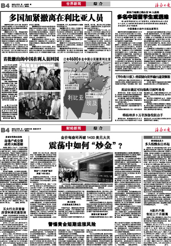 海南日报 世界新闻/财经新闻 012 2011-02-251 2011年02月25日 星期五