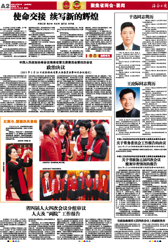 海南日报 聚焦省两会·要闻 002 2011-02-251 2011年02月25日 星期五