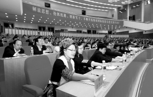 | 2月25日,海南省第四届人民代表大会第四次会议圆满完成各项议程,在省人大会堂闭幕。图为闭幕大会上的少数民族代表按电子表决器。 本报记者 宋国强 摄