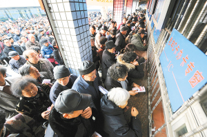 3月1日,在杭州龙翔桥公交票证发售中心,众多老年人排队等待办理乘车优惠卡。 当日,杭州市调整老年人公交优待政策,60至69周岁本地及外地老人给公交优惠卡充值时,享受的赠予额度从20%提高到100%,相当于乘车打4.55折。 新华社发