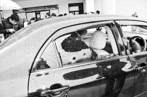 | 3月2日,巴基斯坦少数民族事务部长沙赫巴兹·巴蒂乘坐的汽车在首都伊斯兰堡遇袭后留下弹孔。 新华社发 |