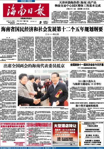 海南日报 头版 001 2011-03-031 2011年03月03日 星期四