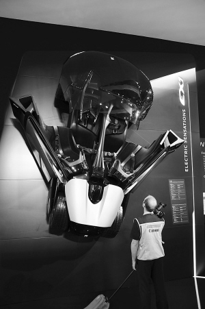 第81届日内瓦国际车展 独特方式展示新车 3月3日,第81届日内瓦国际车展正式向公众开放,来自30多个国家的260多家参展商展出700多款汽车。参展商以独特方式展示新款汽车,吸引了众多参观者。 图为标致EX1 ELECTRIC SENSATION电动概念车“从天而降”。 新华社记者 杨京德 摄