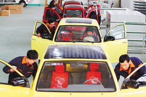 3月3日,由山东潍坊市一家新能源公司自主研发的太阳能电动轿车引来德国、美国、塞尔维亚和挪威的首批外贸订单。这种太阳能电动轿车使用电能作为主要动力,可续航120至150公里。该车最高时速达48公里。 新华社发
