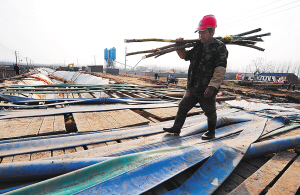 引江济汉工程2013年底完工 3月3日,一名工人从施工现场走过。引江济汉工程,是从长江荆江河段引水至汉江高石碑镇兴隆河段的大型输水工程,渠道全长约67.23公里,年平均输水37亿立方米。工程将于2013年底完工。 新华社记者 程敏 摄