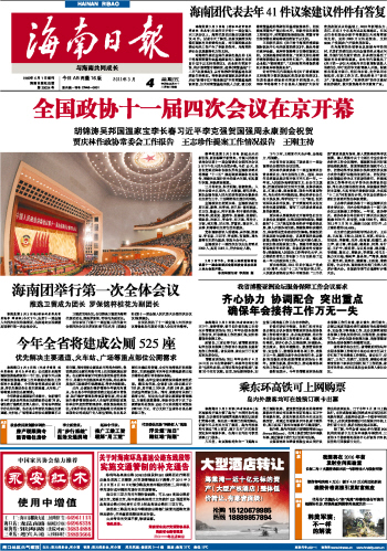 海南日报 头版 001 2011-03-041 2011年03月04日 星期五