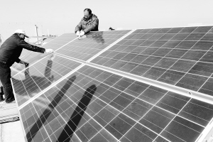 3月4日,作为江苏连云港市首个太阳能光伏发电项目,工作人员在连云港市第一座光伏电站工地加紧施工,预计今年7月建成投运。该电站建设规模为1000千瓦,利用屋顶面积22000平方米,预计年有效发电量为100万千瓦时,所发电能全部输入电网。 新华社发(耿玉和 摄)