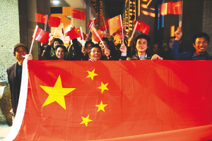 | 3月3日晚,在约旦首都安曼阿利娅王后国际机场,等待出发的中国工人手举国旗。 |