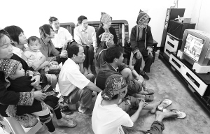 | 3月5日上午,儋州市南丰镇海雅苗村农民群众,围坐在电视机前,观看十一届全国人大四次会议开幕大会盛况。
