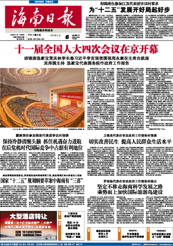 海南日报 头版 001 2011-03-061 2011年03月06日 星期日