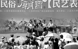 | 第七届中国(三亚)龙抬头节民俗庙会上的歌舞表演。 本报记者 苏建强 摄 |