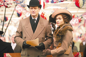 当然,国王毕竟是国王,王室的尊荣与卑怯尽在片中。乔治五世抱怨:王室已经衰落,他们成了“戏子”。乔治六世抱怨:我能组织政府吗?我能发动袭击吗?我只能发表演讲鼓舞人心!乔治六世的哥哥爱美人不爱江山,退位做了温莎公爵,理由很堂皇:国王的责任重大,如果没有我爱的人支持,我无法胜任。一向平等待人的国王急了也会骂医生:你是无名小卒,你不能做这把国王专用的椅子!说起来,英国王室在当代是一个极端尊贵又略显尴尬的存在,他们荣华富贵,銮驾迎送,然而他们大权旁落,只是国家的名义魁首。在时政新闻里,他们一言一动仪态万千。在街谈巷议和八卦新闻里,他们又是被窥视和嘲笑的对象。近年来,奥斯卡评委对英国王室半真半假的故事十分偏爱。在《女王》里,戴安娜王妃身亡后,英国王室成了漩涡的中心。戴妃生前把王室的赐予弃如敝履,英国人却逼着伊丽莎白二世给她风光大葬。女王的复杂心境打动了奥斯卡评委,扮演女王的海伦·米伦一举封后。现在又是伊丽莎白的父亲乔治五世上演了一个自强不息的故事,再次让奥斯卡评委们争相投票。