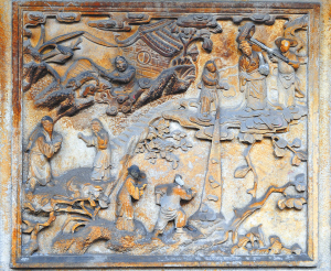 | 自贡盐业历史博物馆中的镂空石雕,每一副都有一个典故。 |
