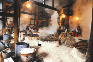 | 燊海井原始产盐全过程。游客可近距离观看盐工工作过程。 |