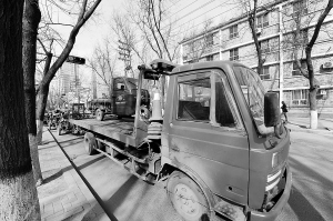 3月6日,在石家庄市区槐北路,一辆卡车正在拖走多辆违章电动三轮车。从3月1日开始施行的《关于加强石家庄市区道路交通安全管理的通告》规定,电动三轮车、拖拉机、低速货车和三轮汽车禁止在二环路以内的30条道路通行。同时,公安交管部门针对营运人力三轮车、电瓶三轮车、机动三轮车的交通违法行为,开展为期两个月的专项治理。 新华社发