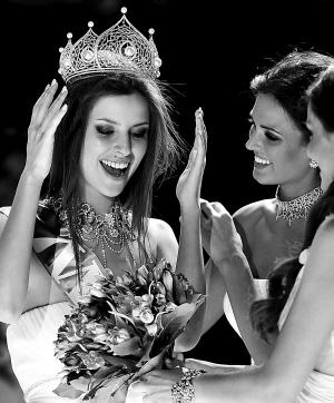 3月5日,在俄罗斯首都莫斯科,获得2011俄罗斯小姐桂冠的纳塔利娅·甘季穆罗娃(左)接受其他选手的祝贺。 来自莫斯科的19岁姑娘纳塔利娅将代表俄罗斯参加于巴西圣保罗举行的2011环球小姐决赛。 新华社/法新
