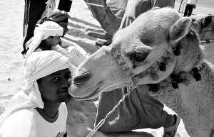 3月5日,在科威特首都科威特城西南约40公里处的科威特骆驼竞赛俱乐部,一名饲养员亲吻即将参赛的骆驼。 每年9月下旬至次年3月下旬的每个周末,科威特骆驼竞赛俱乐部都会举行骆驼大赛,向游人展示这一古老的阿拉伯传统民俗文化。 新华社记者杜健摄