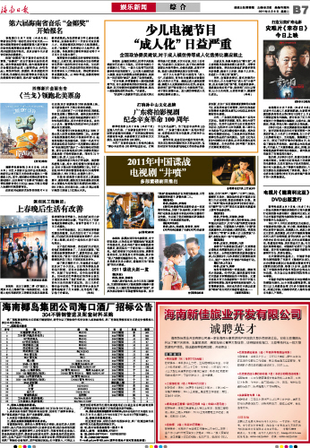 海南日报 娱乐新闻 015 2011-03-081 2011年03月08日 星期二