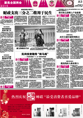 海南日报 聚焦全国两会 003 2011-03-081 2011年03月08日 星期二