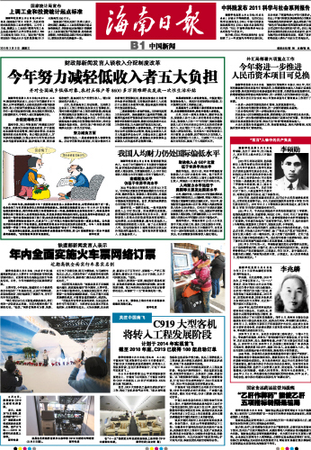 海南日报 中国新闻 009 2011-03-091 2011年03月09日 星期三