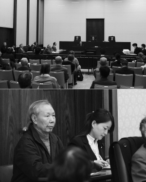 3月9日,在日本东京地方法院,“重庆大轰炸”诉讼案第17次开庭现场(上图)。来自成都的原告72岁老人文仲出庭(下图,左)。 当日,“重庆大轰炸”诉讼案在日本东京地方法院第17次开庭。来自成都的原告72岁老人文仲在法庭上进行了陈述,要求日本政府正视历史事实,并对受害者谢罪和赔偿。 新华社记者季春鹏摄