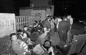 | 让家长倍感苦恼和焦心的上幼儿园难问题,在今年的两会上格外受到关注。 这是在浙江省东阳市实验幼儿园门外,家长们排起长队,准备一早为孩子报名入托(2010年5月23日摄)。 新华社发 |