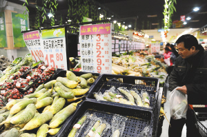 近日,青岛市商务局联合全市20多家农庄和超市举行“百万订单”农超对接行动,减少中间流通环节抬高的价格,让种养殖户低价直销到超市,价格平均降幅15%以上,确保市场“菜篮子”价格稳定。 新华社发