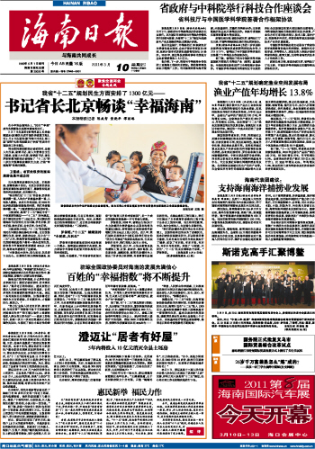 海南日报 头版 001 2011-03-101 2011年03月10日 星期四