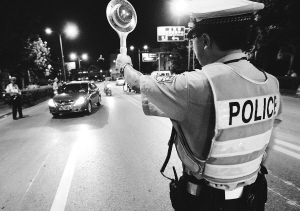 | 从2003年孙志刚事件到醉驾入刑、车船税修改,亿万网民已经成为中国法制进程中重要的参与者和推动者,一件件法律法规背后也有了越来越多来自网民的“草根声音”。这是上海警方查处酒后驾车者(2009年8月26日摄)。 新华社发 |