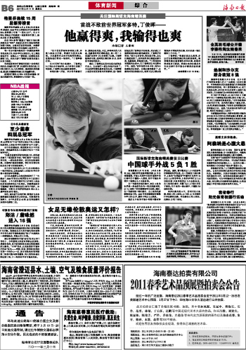 海南日报 体育新闻 综 合 014 2011-03-111 2011年03月11日 星期五
