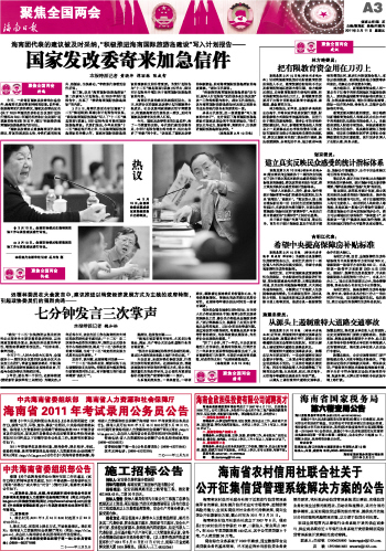 海南日报 聚焦全国两会 003 2011-03-111 2011年03月11日 星期五
