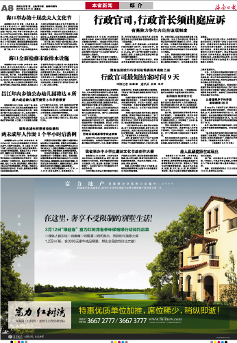 海南日报 本省新闻 综 合 008 2011-03-111 2011年03月11日 星期五
