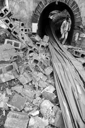 事故现场满是爆炸震塌的瓦砾。 3月12日1时许,贵州盘县松河乡新成煤业四采区发生瓦斯爆炸。发生事故时有34人正在井下当班,15人安全升井,剩余19人已确认全部遇难。事故原因仍在调查中。 新华社记者 欧东衢 摄