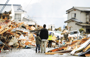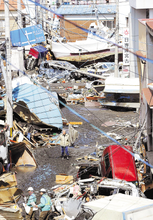 | ↑日本宫城县多贺城震后街景。新华社/法新 |