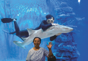 | 博鳌海洋馆内一名游客正在留影。 特约记者 蒙钟德 摄