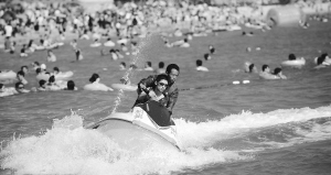 | 三亚大东海,游客尽情感受海上运动的新奇与刺激。海南日报记者王凯摄 |
