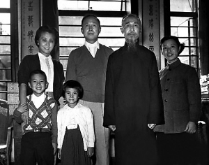 | 1955年钱学森从美国回到上海。这是钱学森(右三)一家四口和其父钱均夫(右二)在上海家中的合影。 (资料图片) |