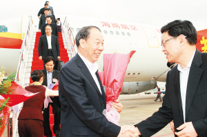 | 3月13日下午,出席全国政协十一届四次会议的部分驻琼全国政协委员返琼。