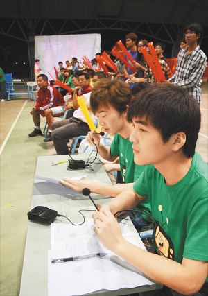 搭两三个棚子,摆上冰柜、烤肠机、爆米花机、棉花糖机,UCBA的附属产业“服务部”就这么开张了。在这个服务部的经营运作中,由旅游系学生负责会展及策划,营销专业学生负责管理和运作,会计专业学生负责收银记账,所得收入全部归UCBA用于联赛开支。“比赛还没有开始就卖了30多元了。去年最热闹的时候,一小时卖了200多元。”三亚理工职业学院大二电会专业学生郑清清说。