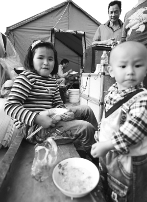 “虽然政府每天都会按时给我们送饭,但救援的解放军也要吃饭,我们就一起做饭给他们。”绍罕凹告诉记者,这些大米都是解放军从倒塌的废墟中挖出来的。