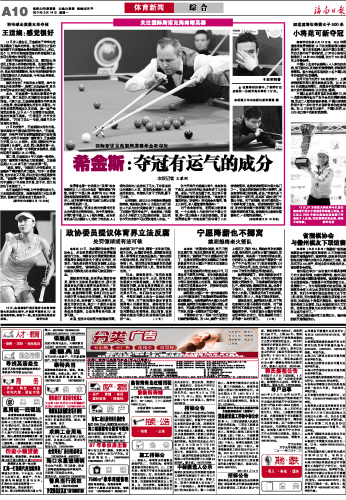 海南日报 体育新闻 010 2011-03-141 2011年03月14日 星期一