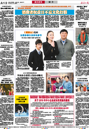 海南日报 娱乐新闻 012 2011-03-141 2011年03月14日 星期一