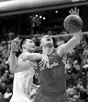| 北京时间3月13日,易建联防守快船队球星格里芬。 小新发 |