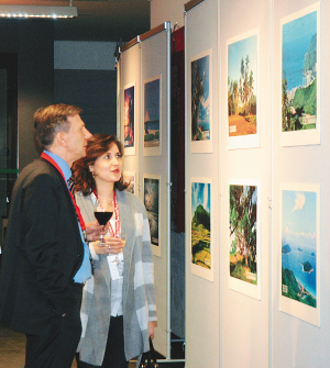 | →在柏林中国文化中心举行的三亚摄影图片展,吸引了不少德国友人。