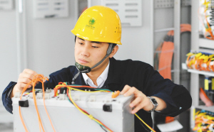 国内首个智能电网综合示范工程———中新天津生态城智能电网正在加紧建设,将在今年全面建成投运。图为公司员工在调试设备。 新华社发