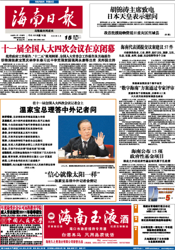 海南日报 首版 001 2011-03-151 2011年03月15日 星期二