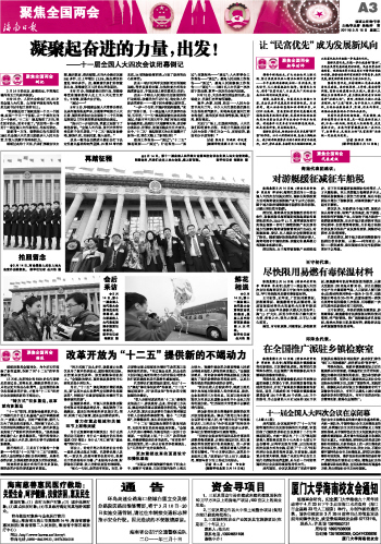 海南日报 聚焦全国两会 003 2011-03-151 2011年03月15日 星期二