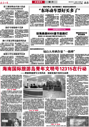 海南日报 本省新闻 005 2011-03-151 2011年03月15日 星期二
