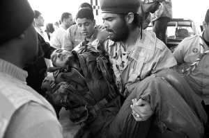 3月15日,一名在战斗中受伤的武装人员被送到医院。从3月12日到14日短短3天,利比亚政府军收复多个城市,相继收复了西部城市扎维耶和东部的贾瓦德、拉斯拉努夫、布雷加等城市,目前正向利第二大城市班加西及其他东部城市推进。15日,利比亚武装部队完全控制了东部曾被反政府武装占据的艾季达比耶市。 安理会16日将继续就是否在利比亚设立禁飞区问题进行闭门磋商。新华社/法新